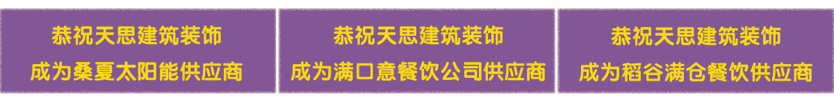 天思裝飾為您提供方便的一站式服務(wù),不僅能夠提供設(shè)計與施工服務(wù),還為您提供建材和家具。我們與眾多建材廠商、家具廠商有著密切合作關(guān)系,品類廣泛,物美價廉,滿足您的需求。